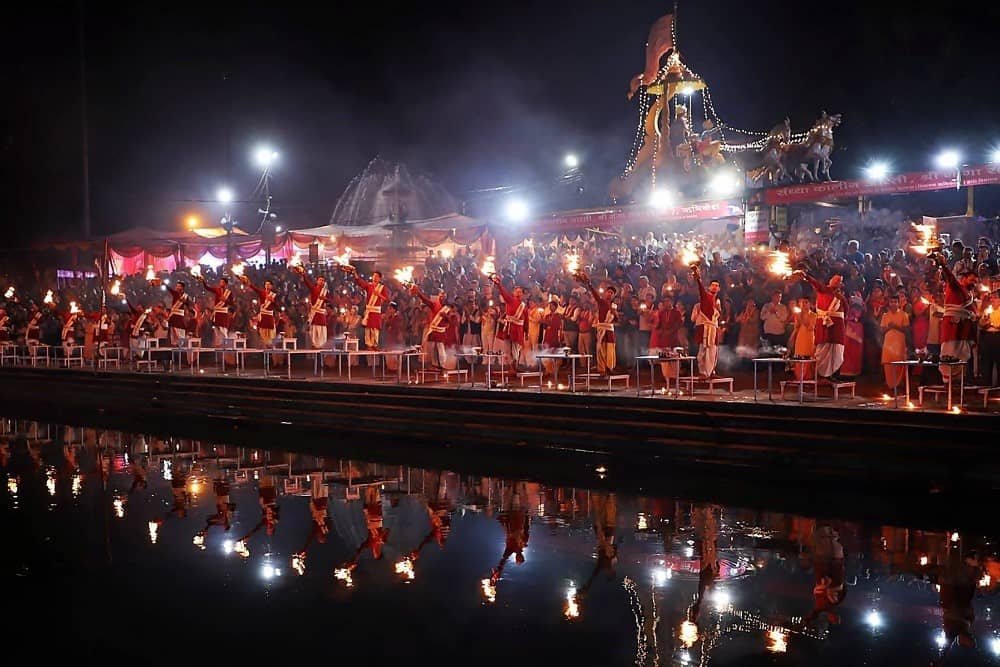 Triveni Ghat is the most sacred and popular ghat in Rishikesh, located on the banks of the holy River Ganga. It is believed that three holy rivers—Ganga, Yamuna, and Saraswati—meet here, which makes this place spiritually important. Every evening, the famous Ganga Aarti is performed, where priests light oil lamps and chant devotional songs. The peaceful atmosphere, the sound of temple bells, and the sight of floating diyas in the river create a beautiful and spiritual experience for visitors. The temperature at Triveni Ghat varies throughout the year. In summer (March to June), it ranges between 25°C to 40°C. During the monsoon season (July to September), the temperature stays between 20°C to 35°C with moderate rainfall. In winter (October to February), it becomes cooler, ranging from 8°C to 20°C, making it the best time to visit for pleasant weather.